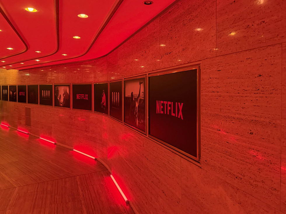 im anschluss des screenings wurde sich im foyer versammelt. dort gelang es trotz der denkmalgeschützten architektur durch filmplakate und Netflix-Mobiliar eine eventfläche zu schaffen, die einen raum bot um sich über die dokumentation ausztauschen.