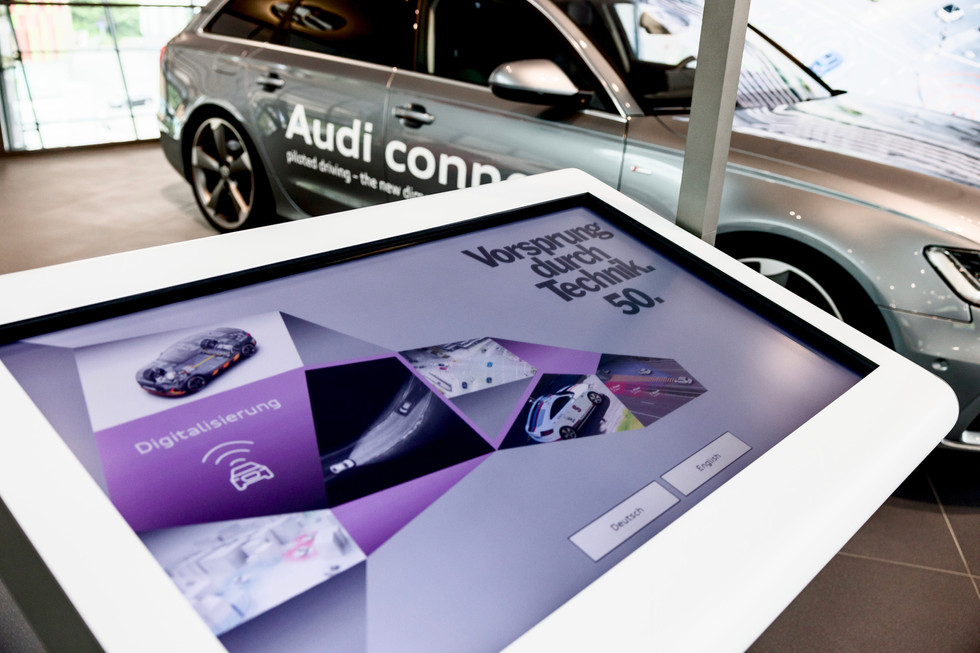 living progress – 50 jahre vorsprung durch technik. unter diesem motto eröffnet audi im forum neckarsulm eine sonderausstellung zum 50 jährigen jubiläum ihres claims. das ausstellungsdesign ist sehr reduziert und basiert auf einem grundmodul aus grafikfläche und touchscreen, das die fahrzeuge und exponate „einrahmt“. durch flexible additionsmöglichkeiten können immer wieder neue, spannende raum-in-raum-situationen geschaffen werden.