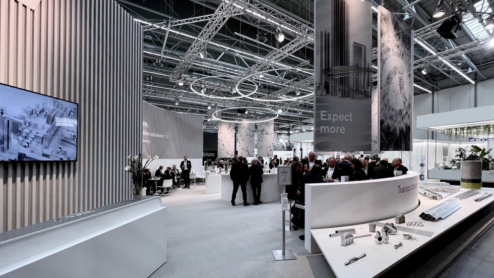 das wiedersehen auf der aluminium in düsseldorf zelebrierte hai mit einem neuen messestand der sich in seiner runden form und der materialgebung an vorherigen konzepten orientierte - jedoch mehr raum für schöne begegnungen bot. die offene, runde lounge mit einer großzügigen bar in der mitte und den produkten drumherum lud geschäftspartner, neue kontakte und freunde in eine gute atmosphäre ein, begleitet durch traditionelle österreichische kulinarik. architektonisch definierte sich der space durch die leichtigkeit des materials selber, einen prominenten meetingbereich und ein generell einhüllendes grafikkonzept zur sensibilisierung für hais marktführerschaft bei der hochpräszisen verarbeitung von aluminiumteilen.